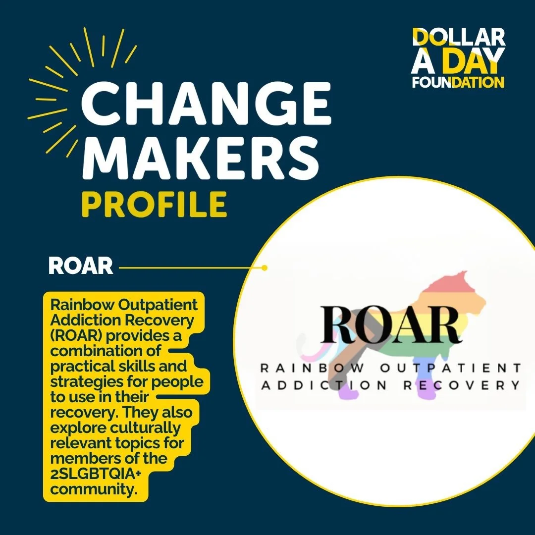 ROAR was nationally recognized with a Changemakers Award by A Dollar a Day Foundation, celebrating its excellence in mental health and substance use care. This award placed ROAR among a select group of programs across Canada making transformative change in mental health and substance use care.